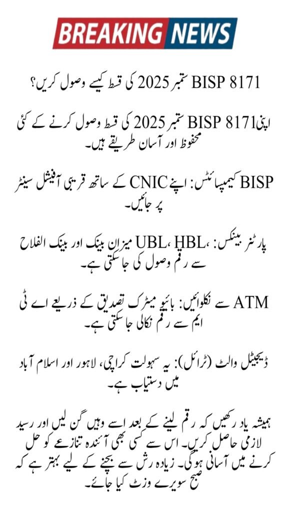 There are several safe and easy ways to collect your BISP 8171 September 2025 installment.