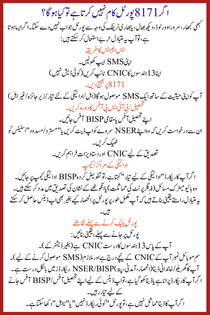 If you are a registered BISP / Kafaalat beneficiary, using the 8171 portal is highly recommended.