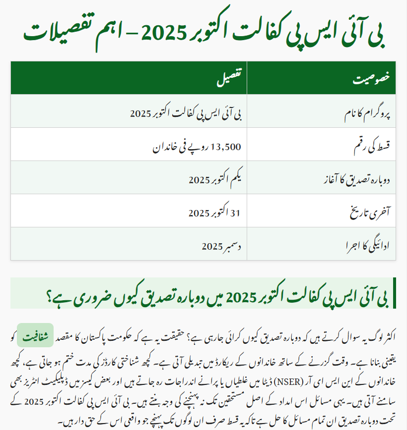 Through BISP Kafalat October 2025 Re-Verification, the government is making sure that only the eligible households get the Rs. 13,500 payment. This step is critical to maintain fairness and justice in the system.