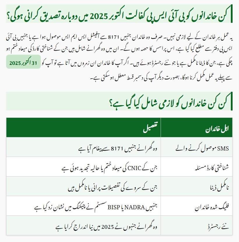 Which Families Need Re-Verification in BISP Kafalat October 2025?