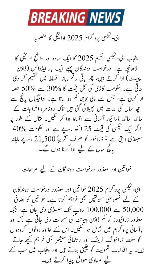 The E-Taxi Program 2025 is a golden opportunity for unemployed youth, women, and low-income families in Punjab. With subsidies, easy down payments, and small installments, owning a taxi has become affordable. Most importantly, the last date to register is October 5, 2025. Apply today from the official Punjab E-Taxi portal and secure your future with a stable source of income.