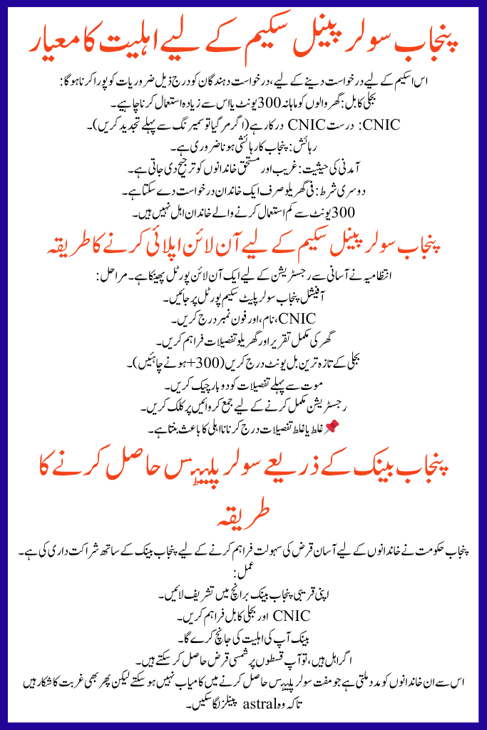 Eligibility Criteria for Punjab Solar Panel Scheme