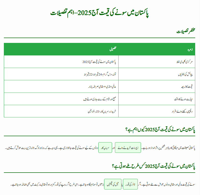 Focus KeywordGold Rate in Pakistan 2025