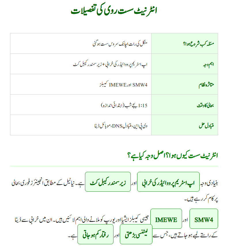 The main reason behind the slowdown was a fault in an upstream provider along with undersea cable cuts. According to Nayatel’s official statement, their upstream network faced a technical issue, and engineers were working immediately to fix it.
