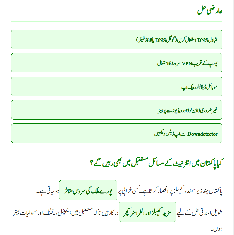 According to officials and experts, repairing undersea cables may take four to five weeks. During this time, internet in Pakistan—and even in nearby countries—may remain slow. Although traffic has been temporarily shifted to other routes, this is not a complete solution. Especially during peak hours, users are likely to continue facing issues until repairs are fully completed.