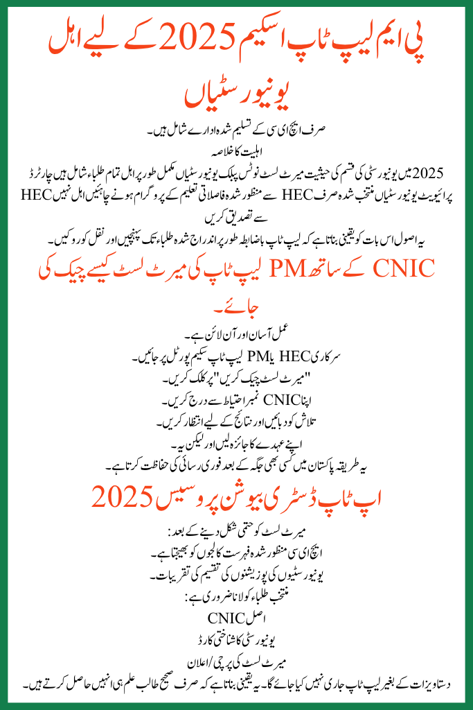 The PM Laptop Scheme 2025 Merit List By University is a key stage for authorizing scholars across Pakistan. The novel CNIC-based merit list system has made examination results faster then more see-through.