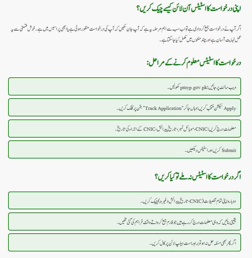 A: Go to pmyp.gov.pk, click on “Track Application,” and enter your details.