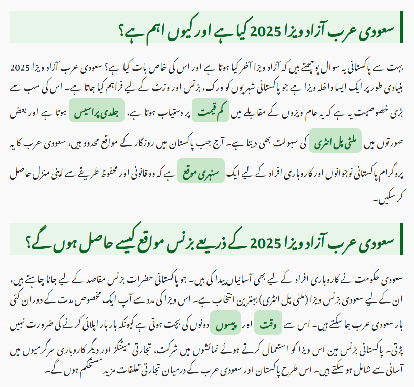 The Azad Visa 2025 is a life-changing opportunity for Pakistanis. Whether you are a worker looking for employment, a businessman expanding trade, or a family member visiting loved ones, this visa provides a safe, affordable, and transparent way to enter Saudi Arabia. With reasonable fees, fast online registration, and sponsorship support, it is opening new doors of success for Pakistanis. Always make sure to use the official Saudi website or authorized agents for applying to avoid fraud or delays. This program is not only strengthening individual futures but also building stronger ties between Pakistan and Saudi Arabia.